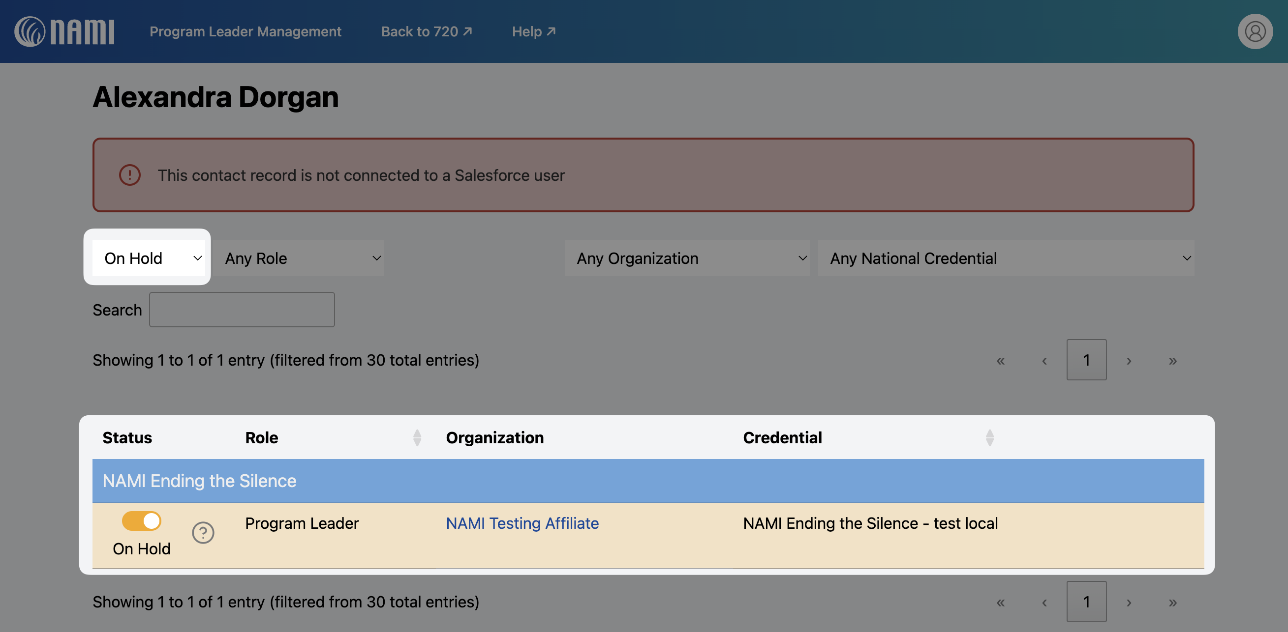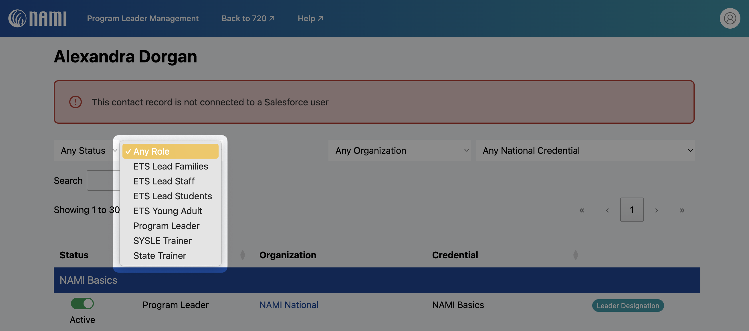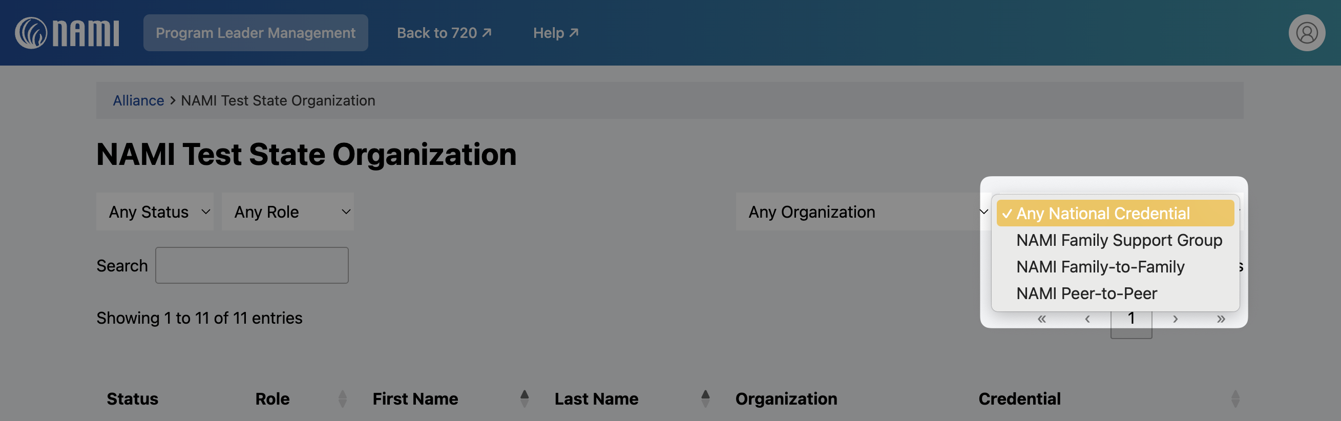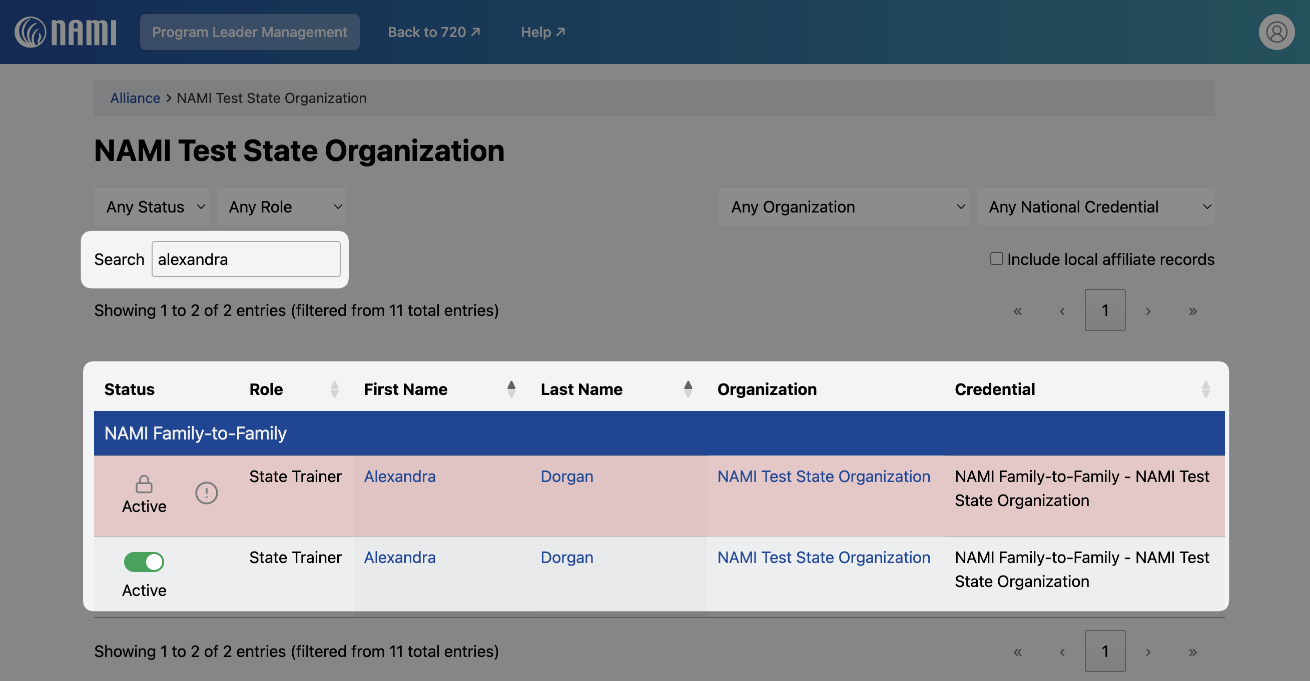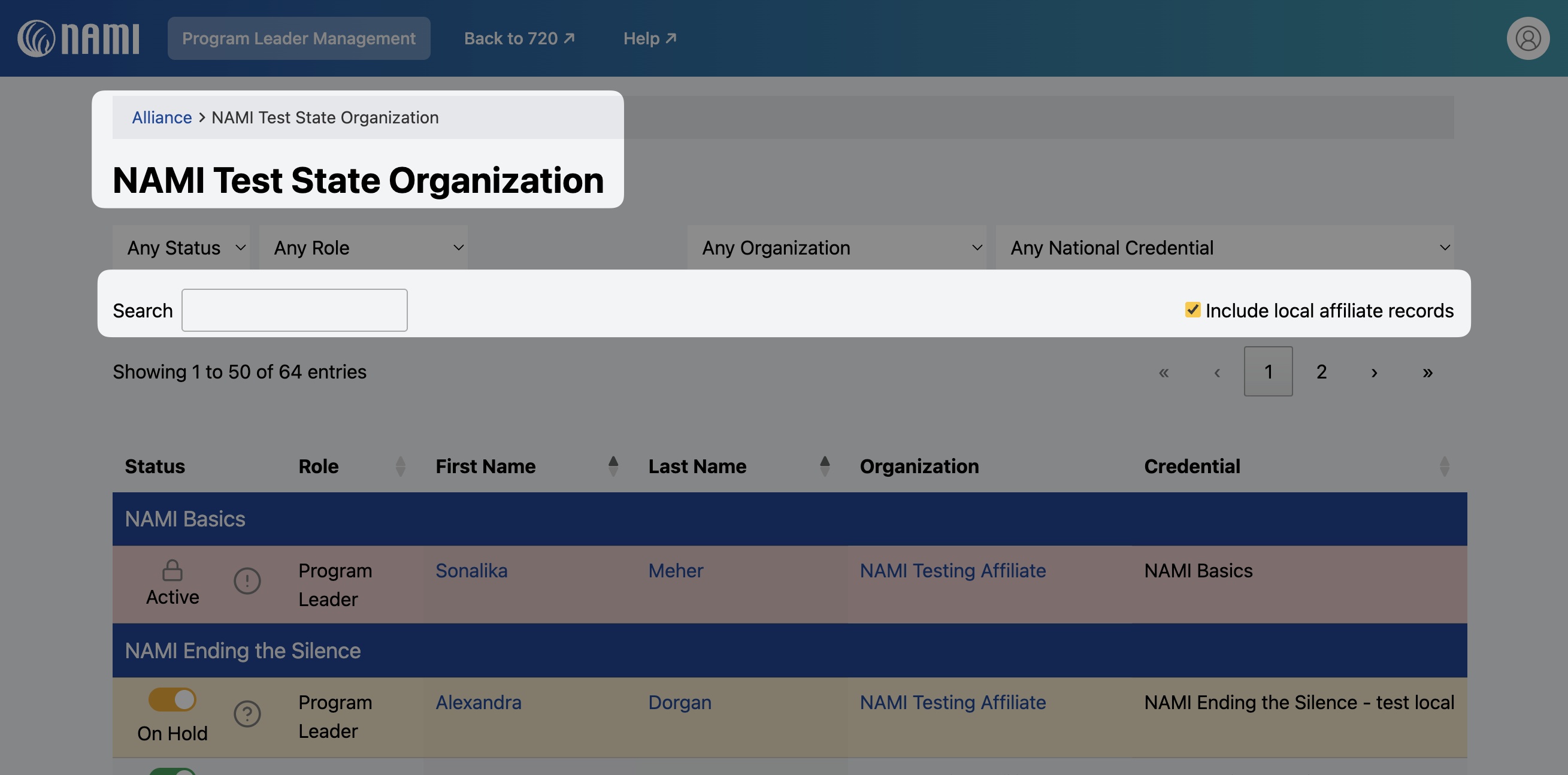 NAMI 720 Credentialing provides a long awaited way for NSOs and Affiliates to manage their currently active and inactive program leaders. While you will still add new leaders and manage records within NAMI 360, through NAMI Credentialing you will now be able to deactivate inactive program leaders that no longer facilitate programs within your NAMI State Organization or NAMI Affiliate, as well as reactivate records for any returning leaders!