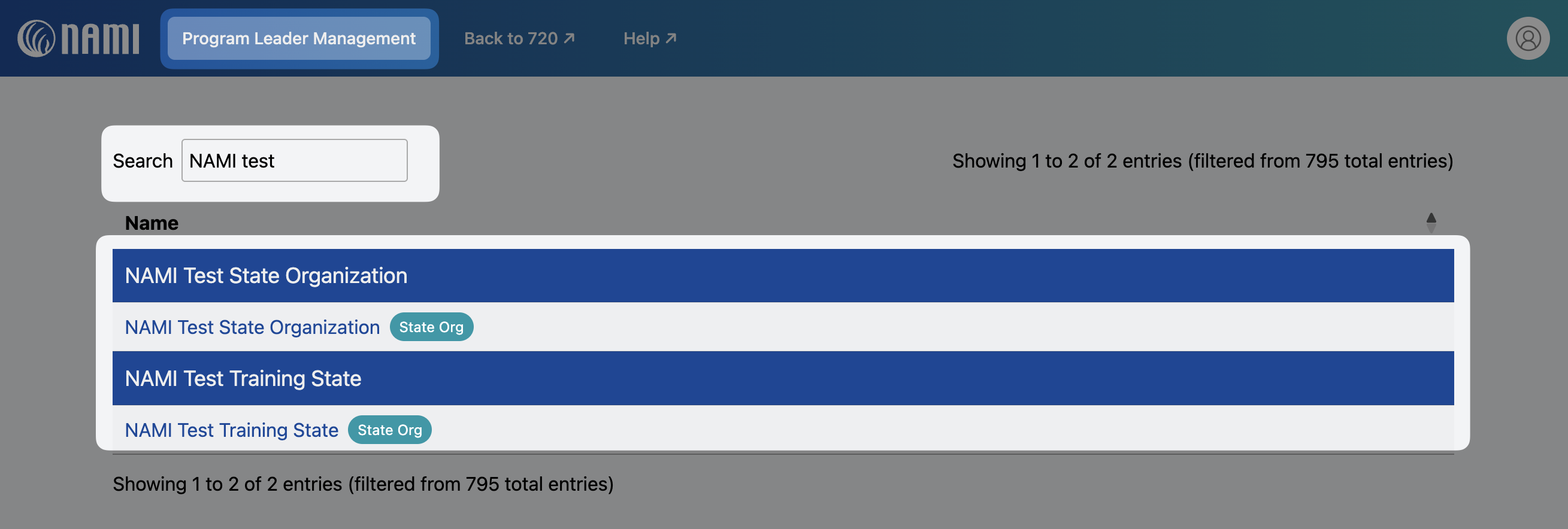 - As a state user: you will be able to select and view your State Org as well as the various NAMI Affiliates within your state