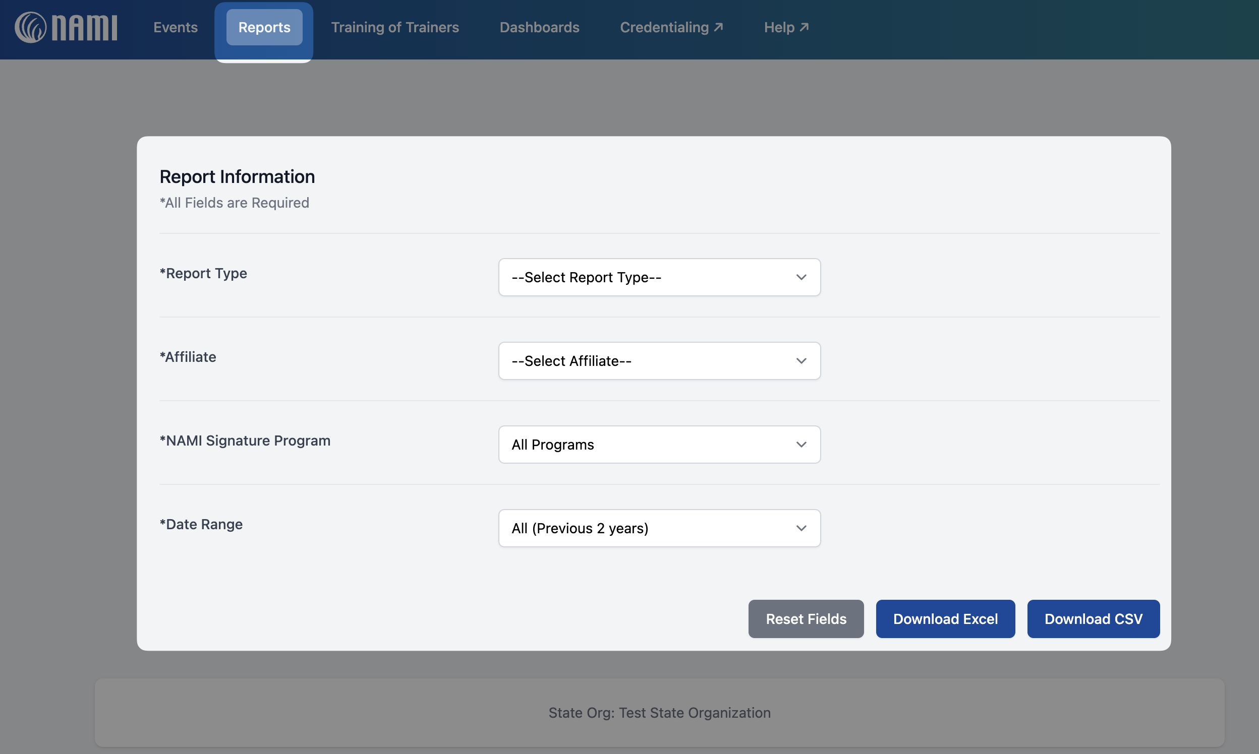 While logged into NAMI 720, select “Reports” at the top navigation bar